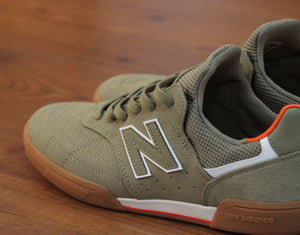 Las NM1010 GM en color oliva con suela blanca con detalles en tierra y naranja son el nuevo colorway que nos presenta New Balance Numeric y Tiago...