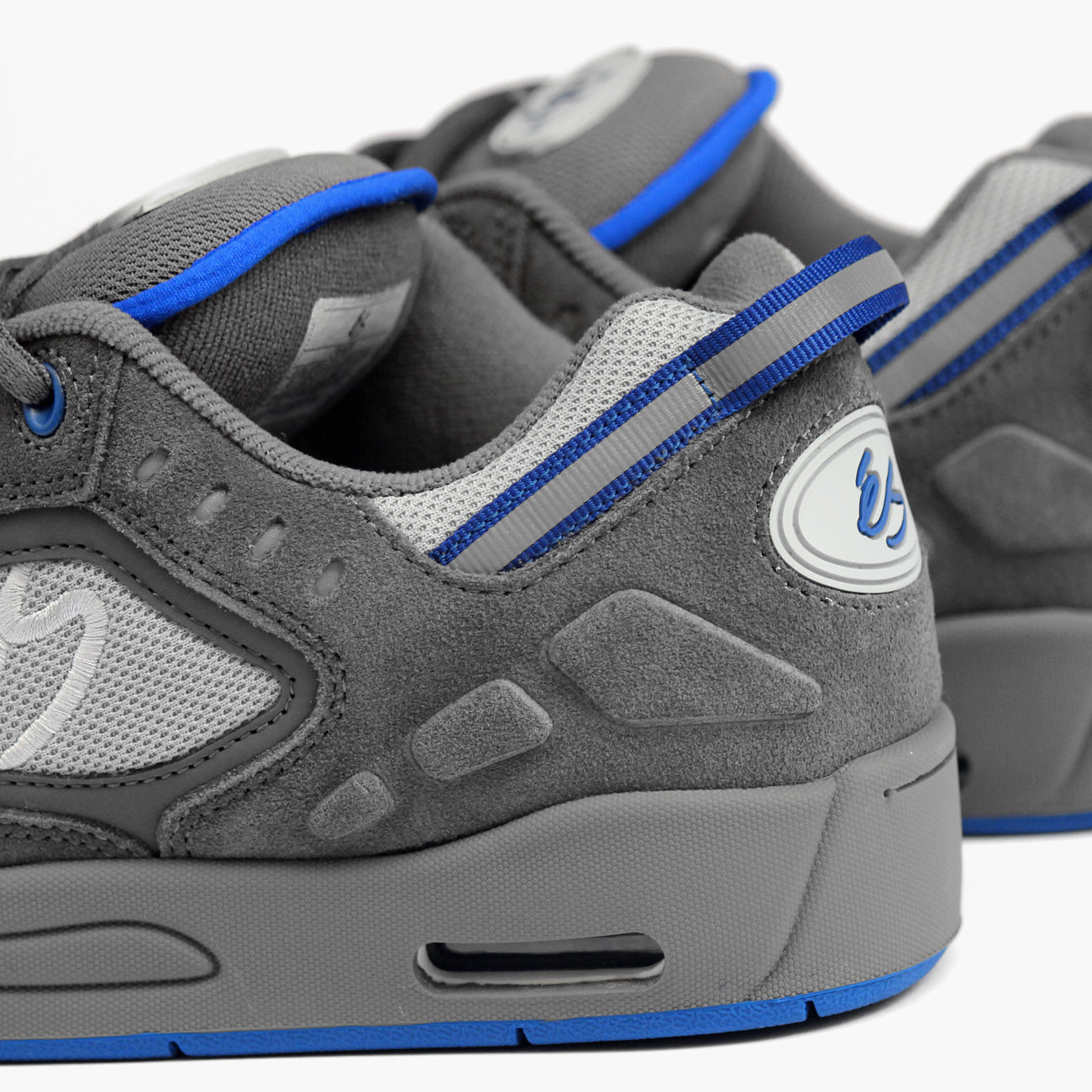 Las éS Creager son la reedición de uno de los modelos más icónicos de éS Footwear de todos los tiempos. Se trata del primer promodel de la leyenda del skate técnico de los 90' Ronnie Creager, el modelo original salió en 1998 y rápidamente se convirtió en un clásico. La zapatilla tiene un calcetín de neopreno para mantener nuestro pie bien sujeto. Esta construido en piel, nobuk sintético y el lateral y la lengüeta de malla, lo que lo convierte en un diseño transpirable, cómodo y duradero. Este colorway esta inspirado en uno de los primeros colorway del modelo OG más demandados, en el colorway gris en contraste con detalles en gris y azul royal. Tienen la puntera de goma reforzada con triple costura, esta muy acolchada y tienen cámara de aire como las originales, unas tiras reflectantes en el talón y la firma de Creager en la lengüeta. Se trata de un colorway muy interesante, un básico perfecto en gris y azul, esta zapatilla es una edición especial y de distribución muy limitada y exclusiva para skateshops seleccionadas. Trae cordones grises y azules.