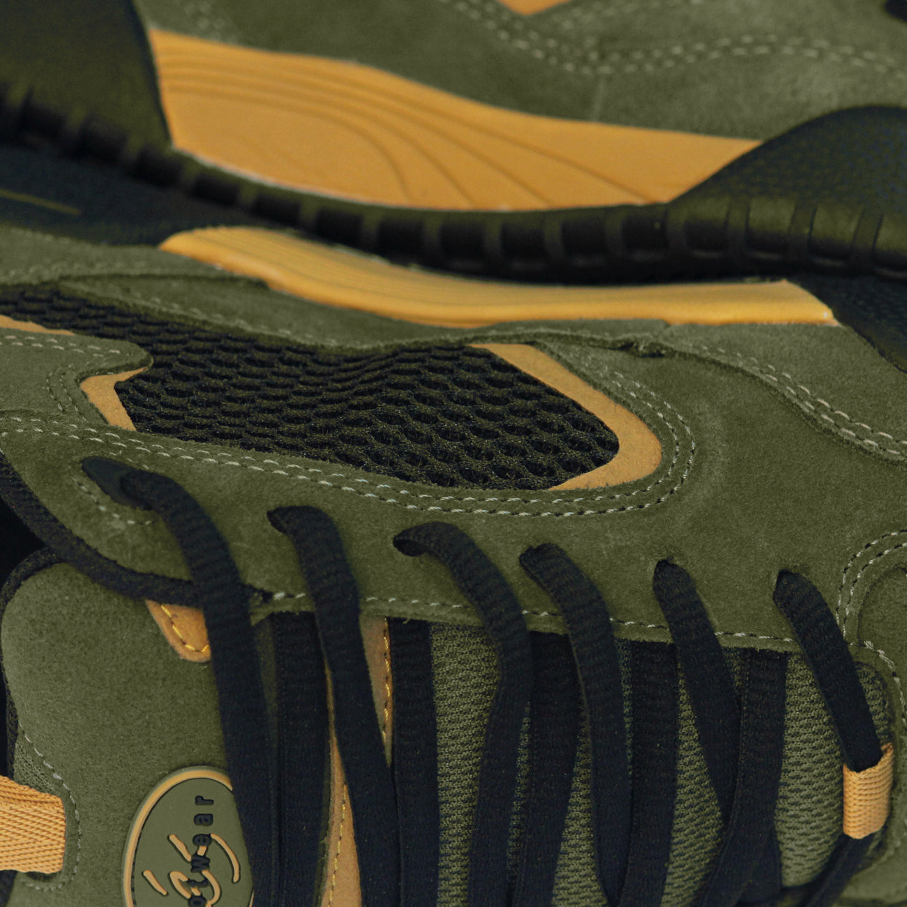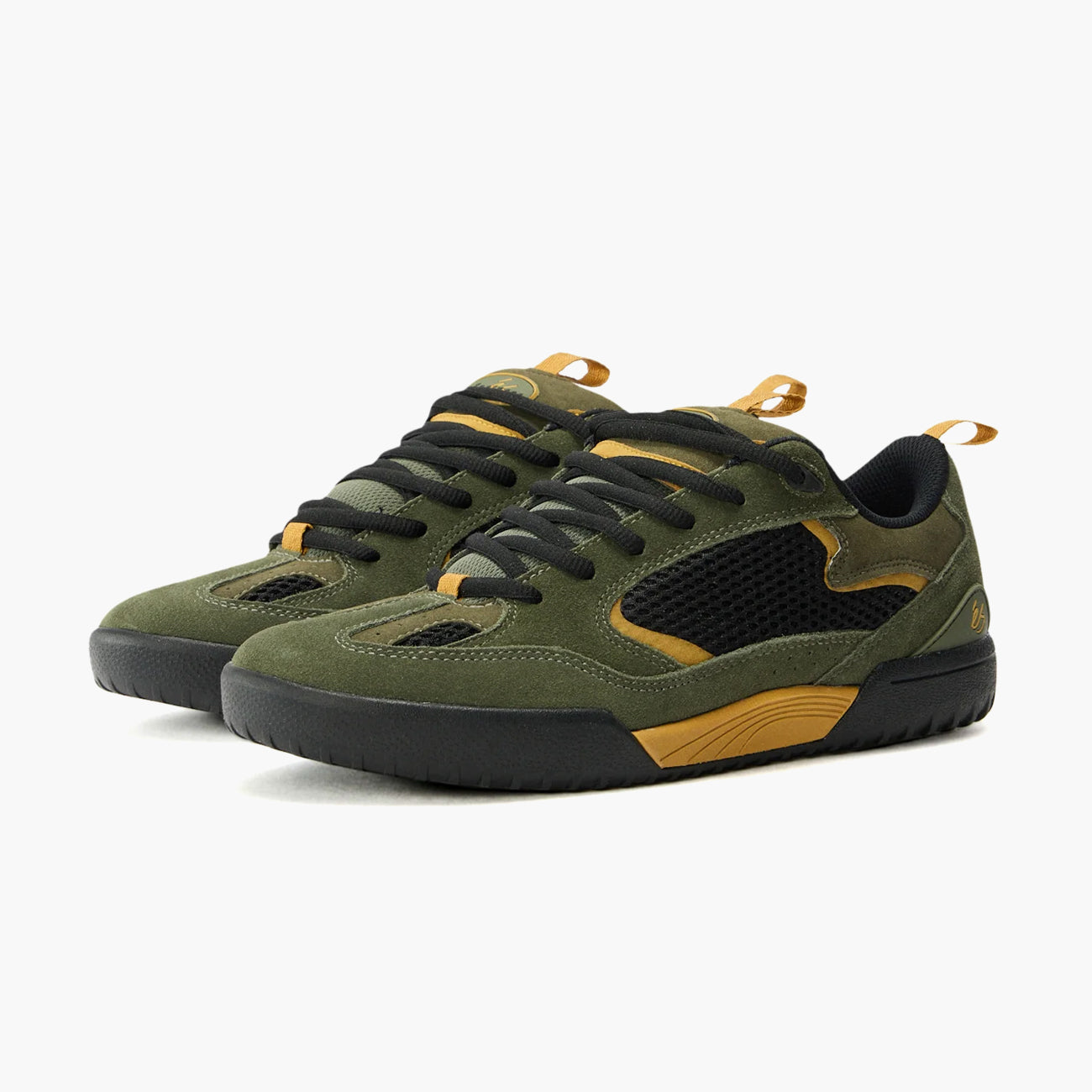 Las éS Quattro salieron en 1998 y se agotaron rápidamente, se convirtió en un modelo muy popular gracias a Ronnie Creager y Rick McCrank, que eran fanáticos de las éS Quattro gracias a su máxima comodidad, la sensación de tabla y su impresionante apariencia. Las nuevas éS Quattro mantienen la esencia de las originales y sus características técnicas, se trata de una zapatilla muy cómoda y ligera, algo acolchada y en un color increíble. Los laterales tienen bandas elásticas que unen la zapatilla a la lengüeta y ofrecen una máxima sujeción del pie , en los laterales tenemos detalles reflectantes y las zonas que sufren mayor desgaste al patinar están reforzadas. Este colorway es en suede verde oscuro con las partes de mesh en negro y acentos en amarillo, la suela es de color negra y amarillo, es un colorway genial.