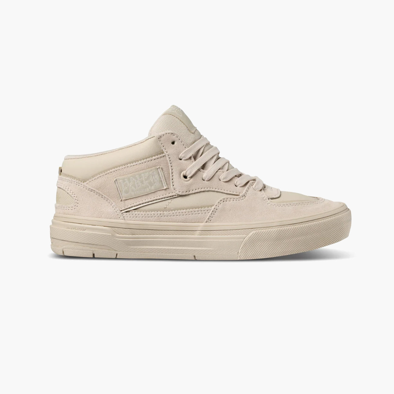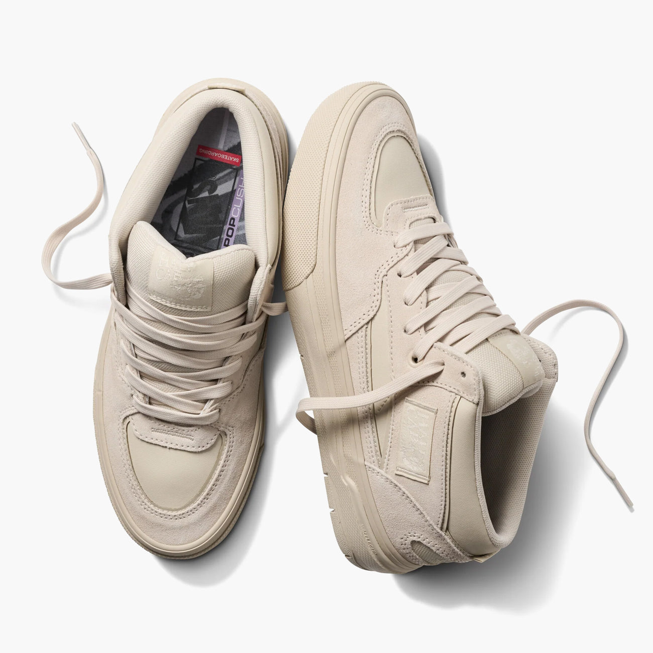 Las nuevas Vans Half Wafflecup son una revisión del clásico de Vans con construcción cupsole. Se trata de una zapatilla media con cordones, forro y cuello acolchado para una mayor sujeción y flexibilidad, una puntera reforzada que resiste el desgaste y la distintiva suela wafflecup de Vans para un agarre más firme. El color de esta colaboración con el fotógrafo Atiba Jefferson es en suede premium y cuero en color hueso, con el logo de Half Cab y el de Vans en relieve. La suela es del mismo color. Esta colaboración viene con plantillas personalizadas con fotografías de Atiba, 2 cordones personalizados y un bolsillo de velcro en la lengüeta.