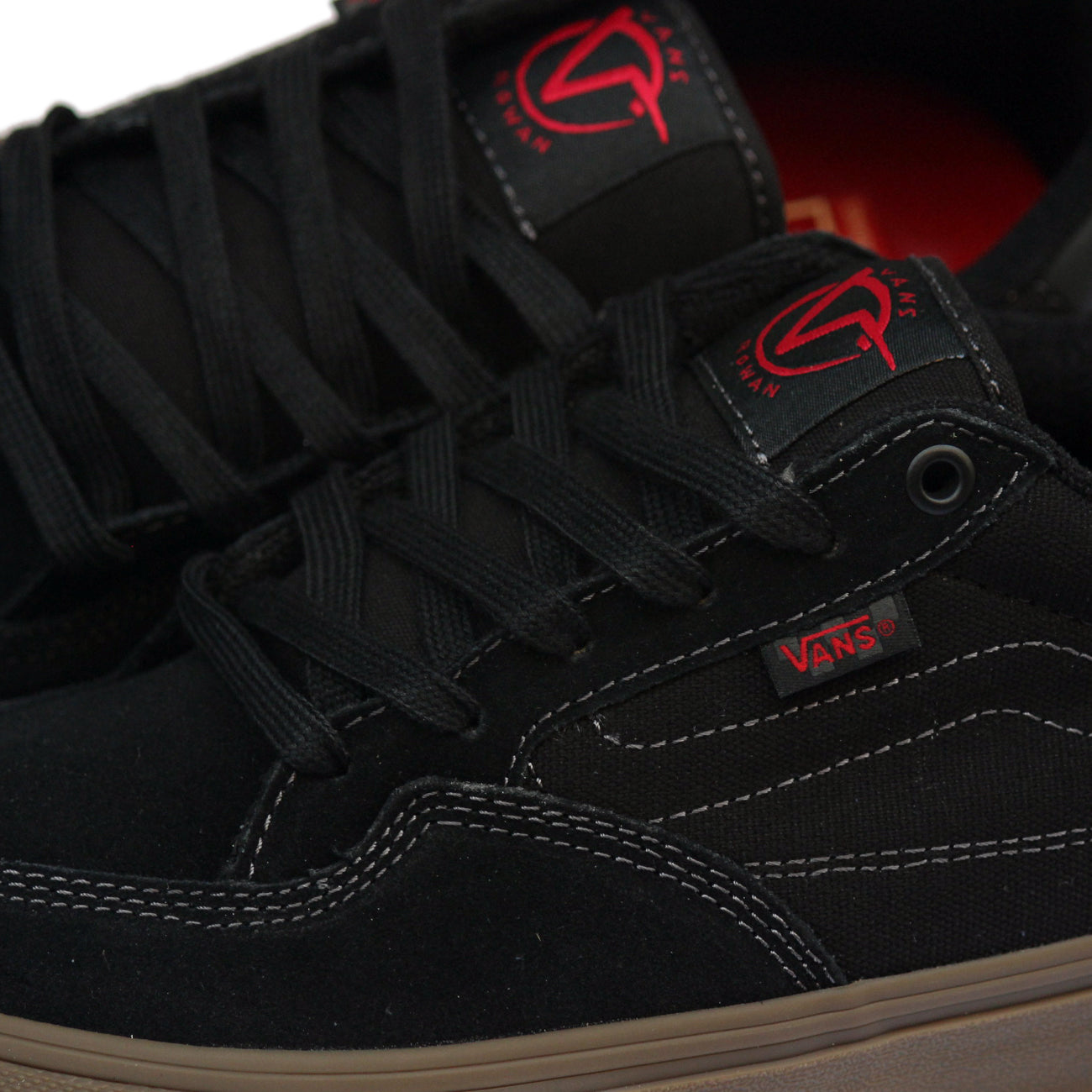 El promodel de Rowan Zorilla para Vans es una zapatilla vulcanizada con suela de Wafflecup, la cual proporciona la durabilidad de una zapatilla cupsole y el agarre y tacto de una zapatilla vulcanizada. La puntera es de una sola pieza con triple costura para alargar la durabilidad de la zapatilla y los laterales son de ante y lona. El interior nos ofrece una plantilla mejorada de Popcush para absorber todos los impactos y la lengüeta esta ligeramente acolchada y sujeta por dos gomas elásticas para mantener nuestro pie en su sitio. La zapatilla viene con dos juegos de cordones negros que combinan perfectamente con la zapatilla de color negro con las costuras en el mismo color y la banda lateral en negro también con igual que ciertos detalles de la zapatilla en rojo. La suela es en color gum oscuro.